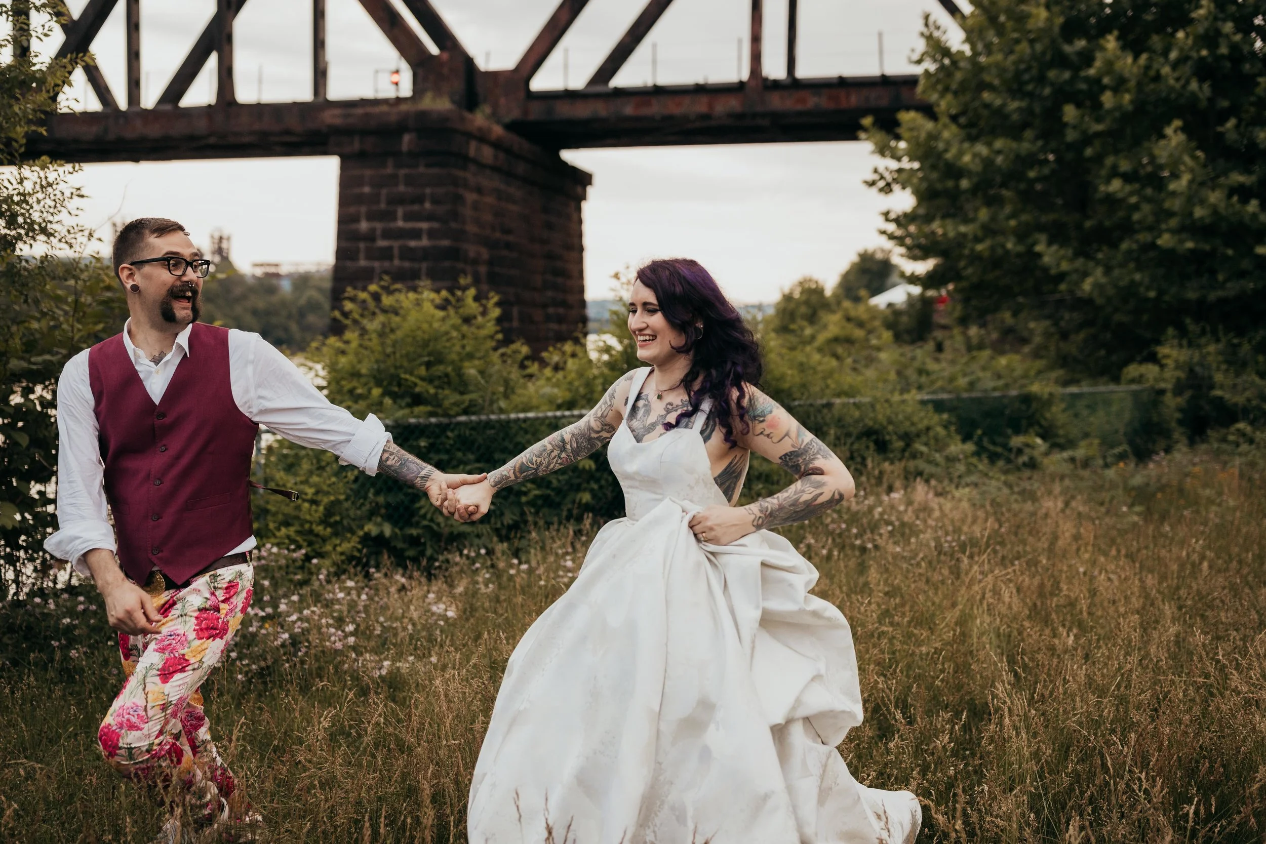 When you get clients/friends like Hillary and Greg you know that their wedding is going to be a BLAST! Especially when Devoted to you (Melissa Crawford) plans the day and The farmers Daughter does the florals! Carrie Furnace is one of the coolest locations to get married at in Pittsburgh. It offers a feel that you just can not get anywhere else. Hillary and Greg did it right with the blast furnace as their backdrop and took full advantage of the entire property for their portraits. We can not say enough about how amazing it was to work with them and their family!