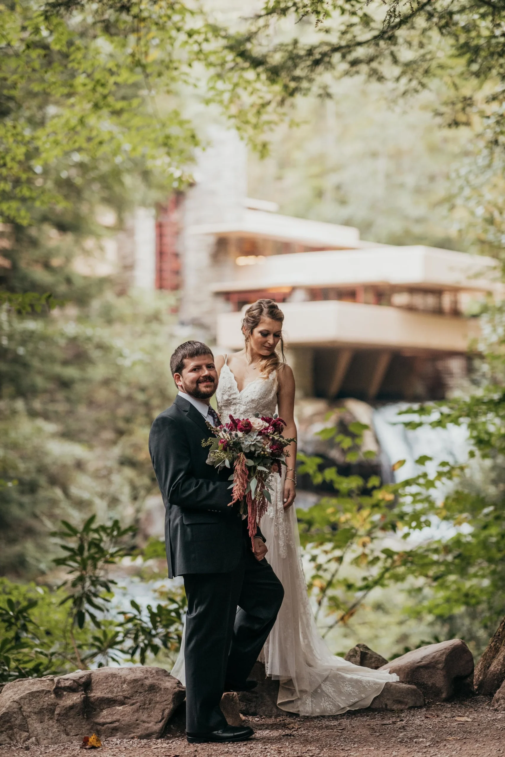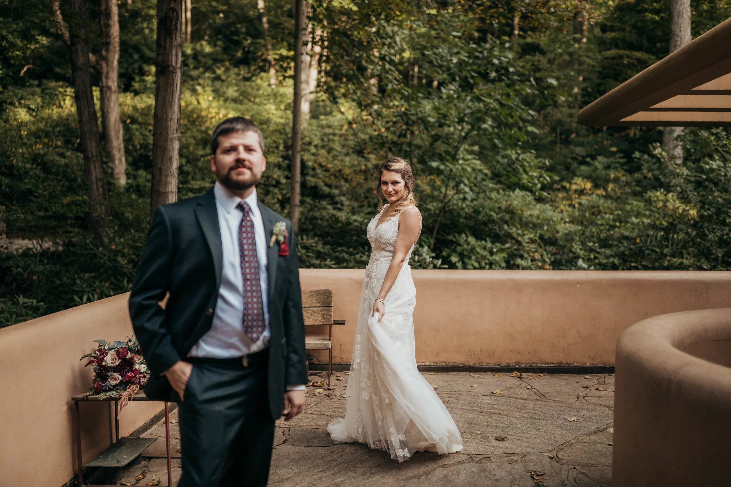 The Barn at Falling Water is one of the coolest venues in the Pittsburgh area. To be able to wander the property of Falling Water after everyone is gone is quite the experience. You get to experience the grounds and house in a way that no one else ever does. You can take in all the nature, sounds and have some one on one time with your significant other. Stephanie and Tim had such a gorgeous and fun wedding that was a true testament to how creative and fun they are.